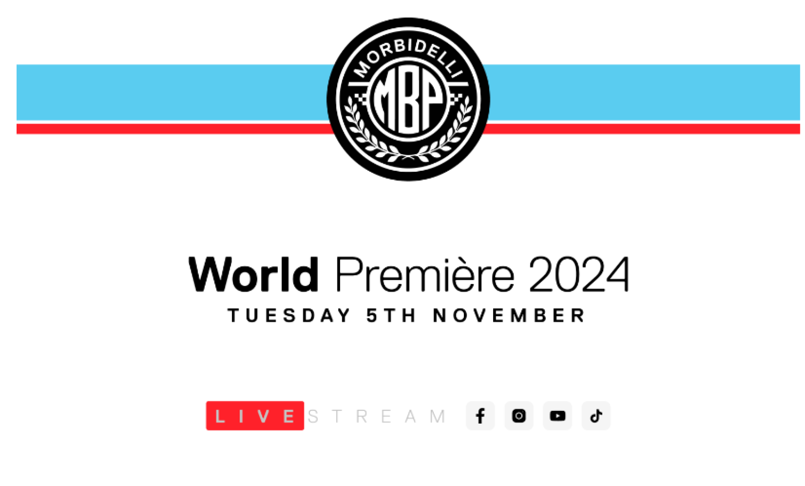Para aquellos que no puedan asistir en persona a EICMA, el estreno mundial de Morbidelli se transmitirá en vivo en YouTube y Facebook. No se pierda la presentación de tres nuevos modelos y otros emocionantes anuncios de la marca el martes 5 de noviembre a las 13:00 CES (GMT+2). Haga clic en los enlaces a continuación para acceder a la transmisión en vivo y configurar un recordatorio para el evento: